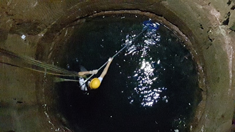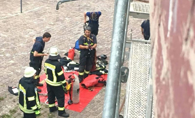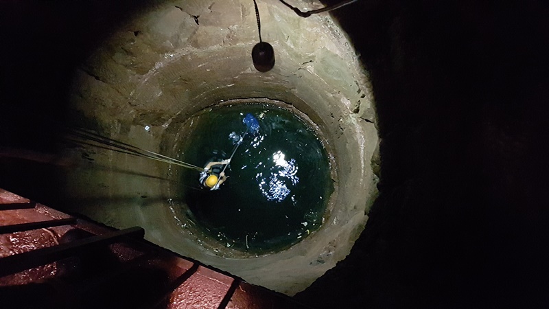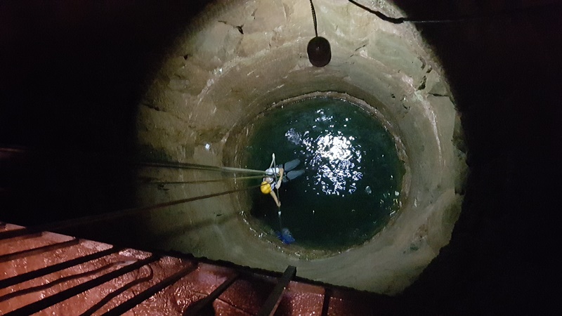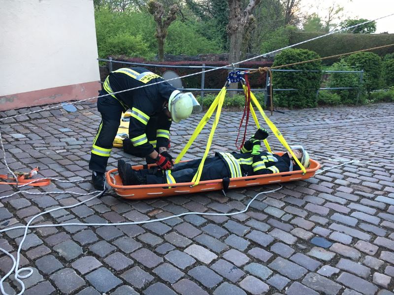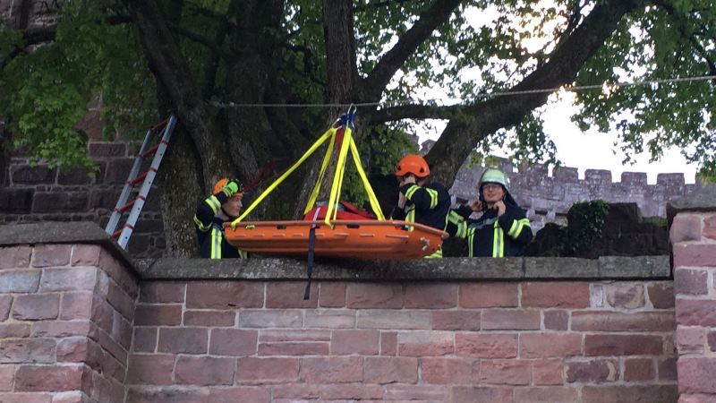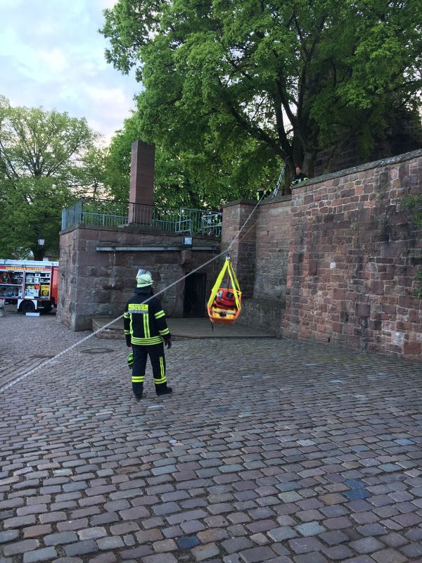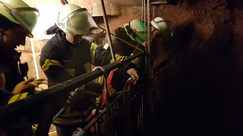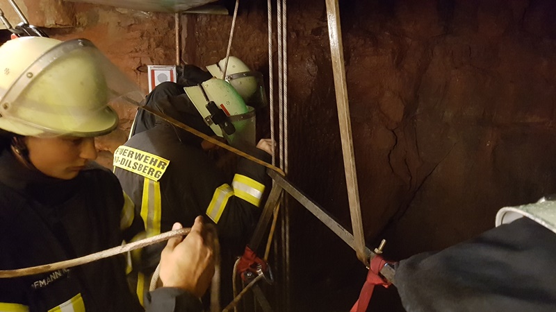 Der 45 Meter tiefe Burgbrunnen war das Übungsobjekt zum Thema "Retten aus Höhen und Tiefen". Als Aufgabe galt es eine über die Brüstung des Burgstollens gestürzte Person aus dem Burgbrunnen zu retten. In diesem Zuge wurde gleich der Müll, welcher durch die Burgbesucher in den Brunnen geworfen wurde, von der Wasseroberfläche entfernt.