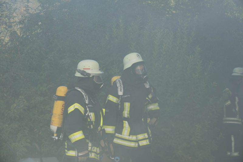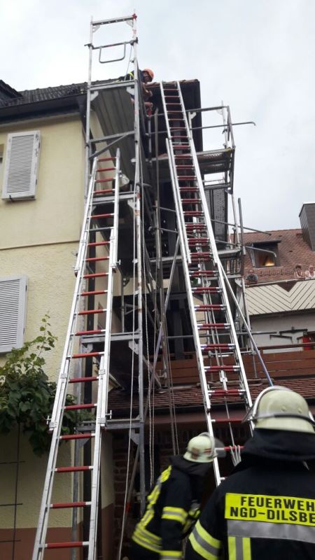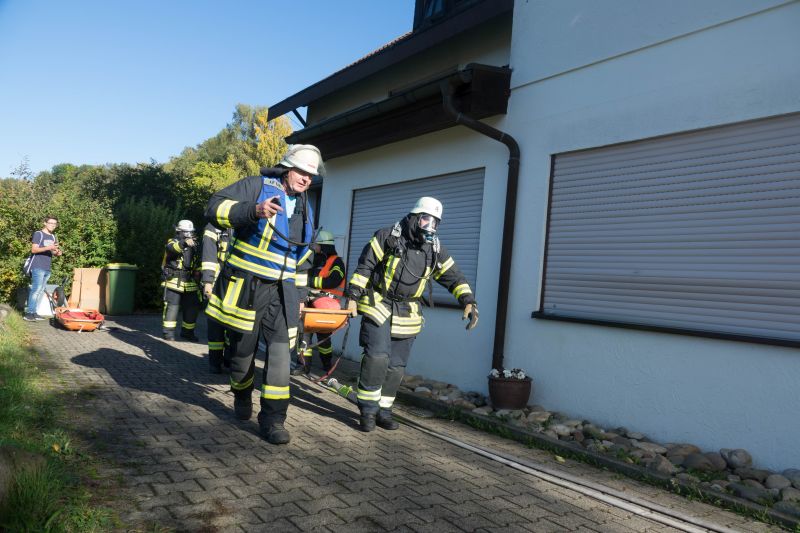 Die Aufgabe der Übung bestand darin, neben dem Aufbau eines Löschangriffs auch mehrere verletzte Personen von einem Gerüst zu retten.