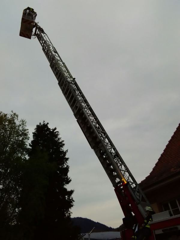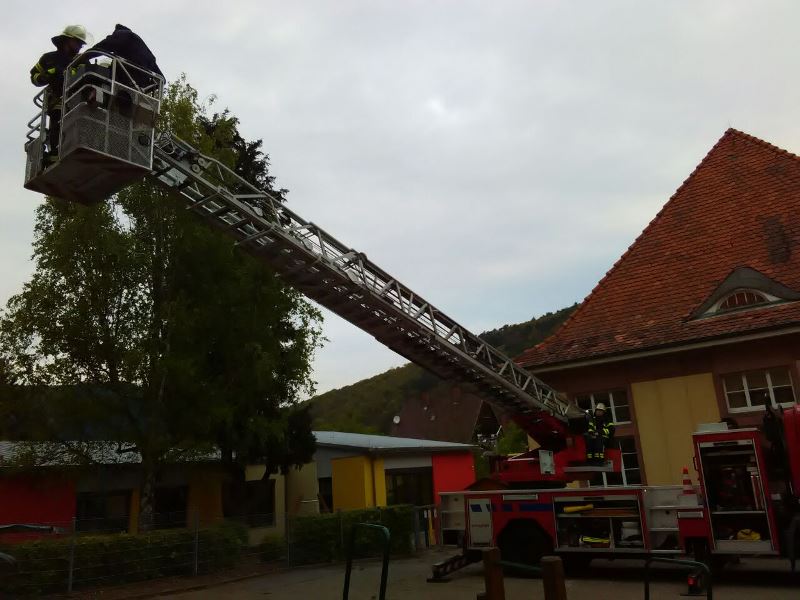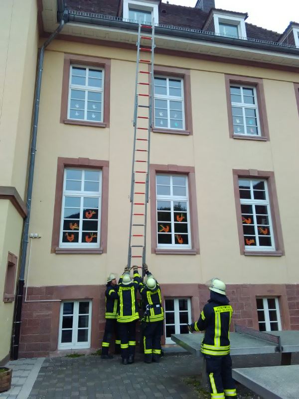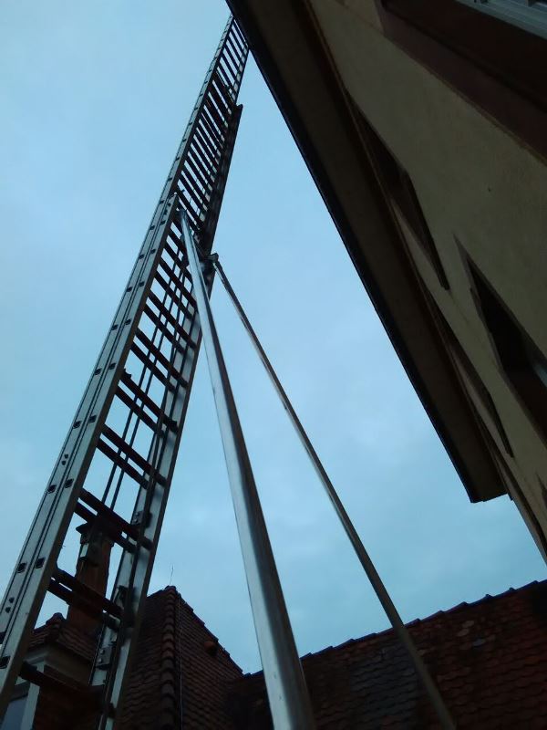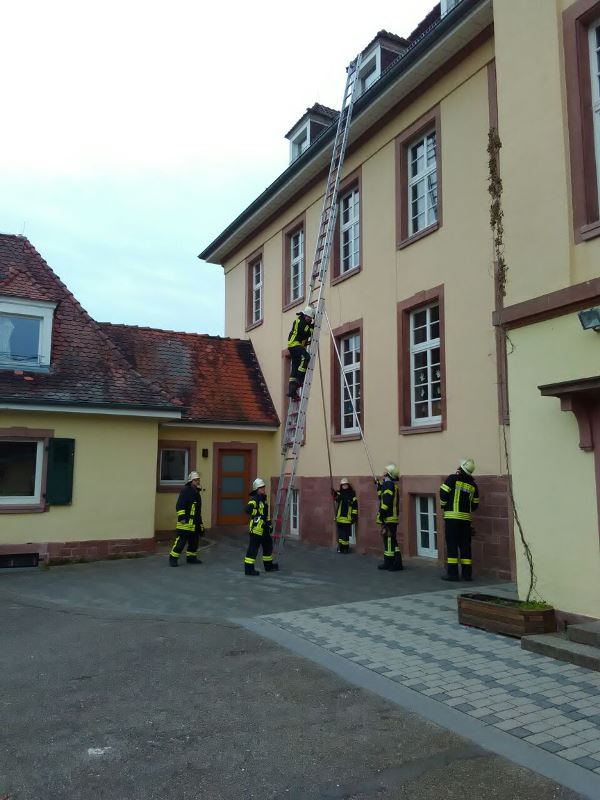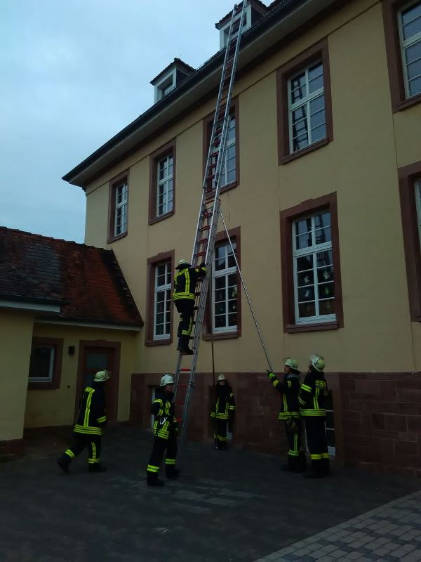 Der heutige Übungsinhalt beschäftigte sich mit dem sicheren Umgang und den verschiedenen Techniken und Anwendungsmöglichkeiten von Steck-, Schieb- und Drehleiter.