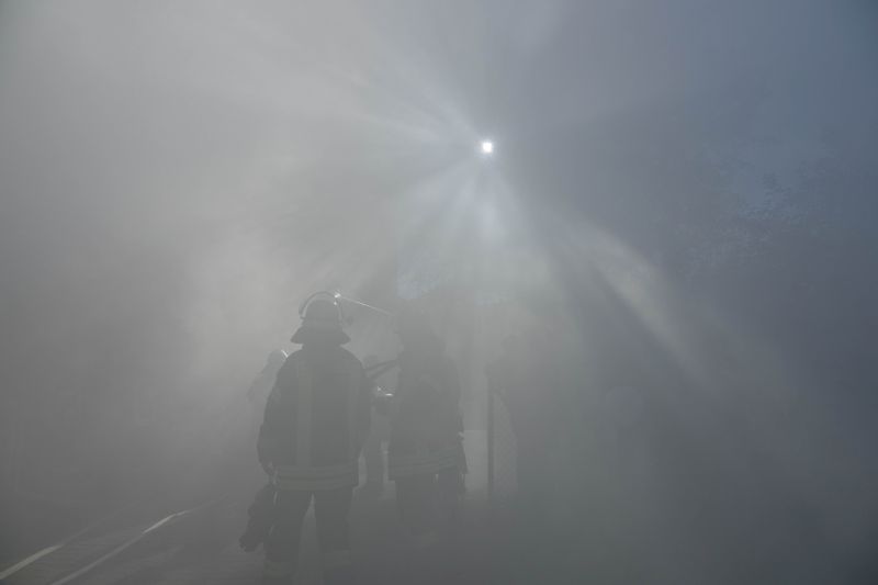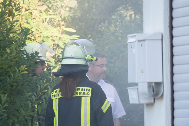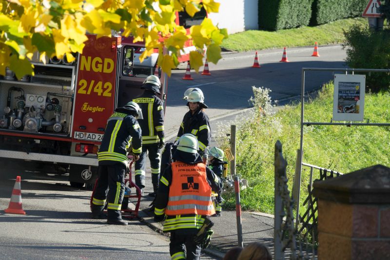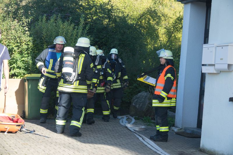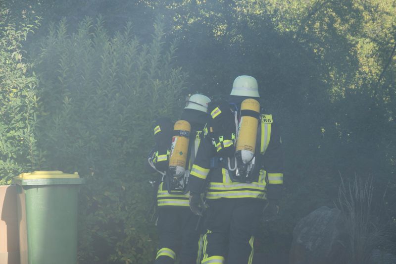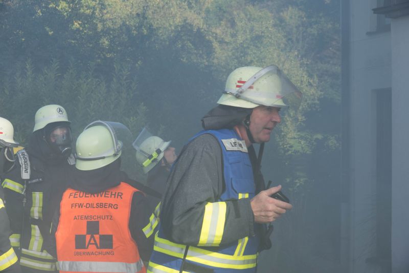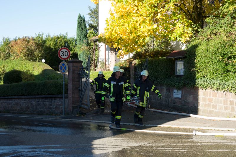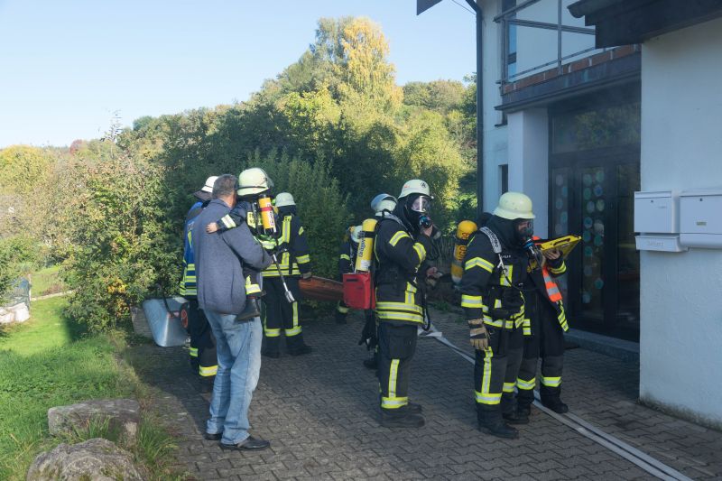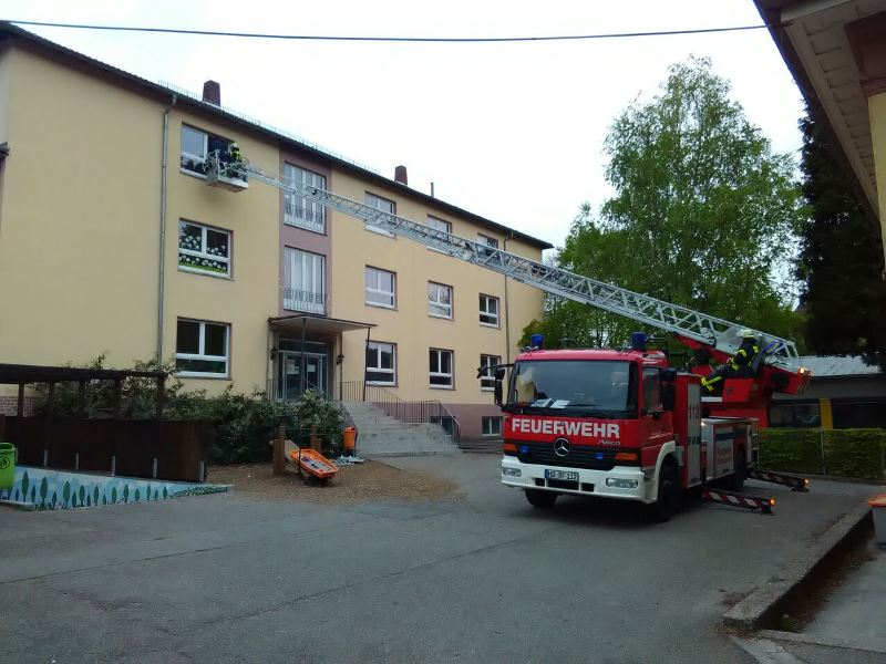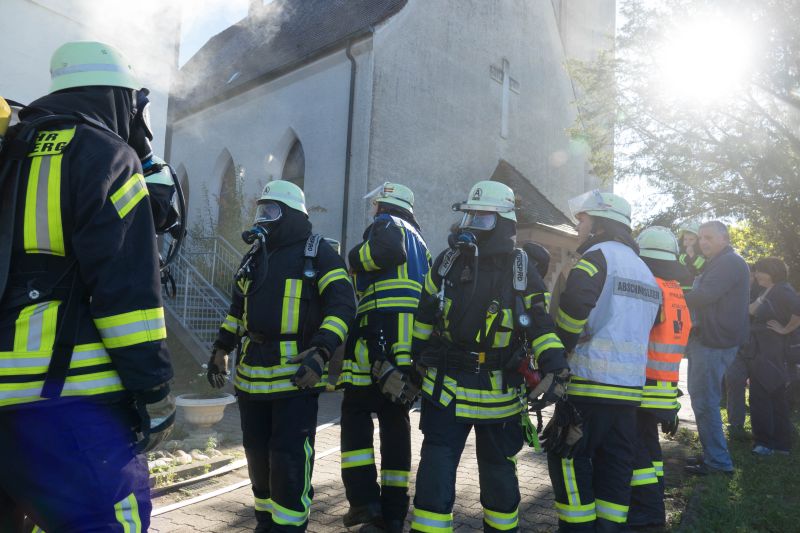Durch Bauarbeiten im Dachgeschoß des Kindergartens in Mückenloch wurde eine Explosion ausgelöst. Das Dachgeschoss stand in Vollbrand und die Flammen drohten auf das Kirchenschiff überzugreifen. Dieses Szenario erwartete die etwa 60 ehrenamtlichen Helfer bestehend aus Feuerwehr und DRK.