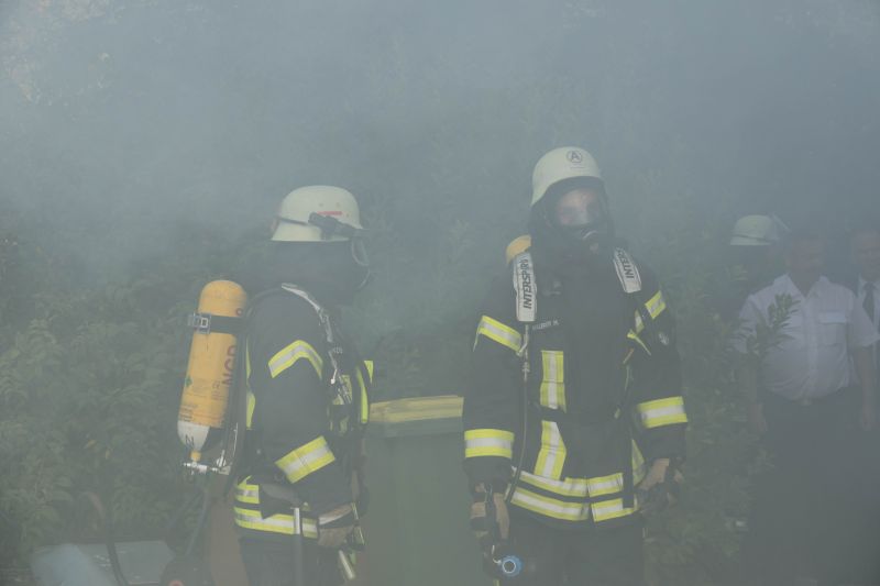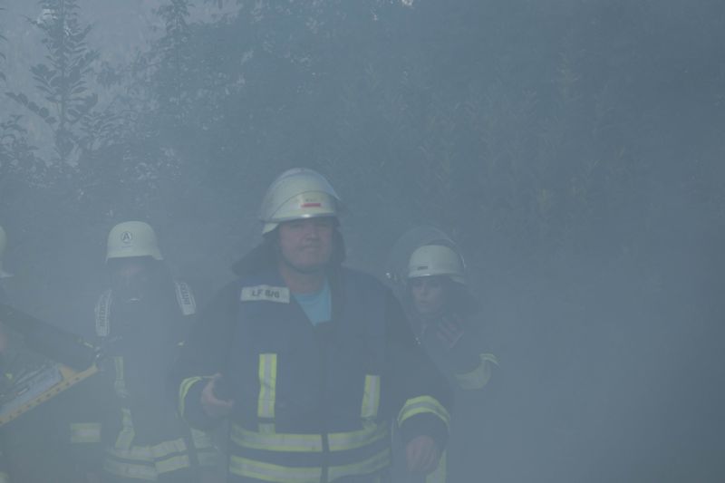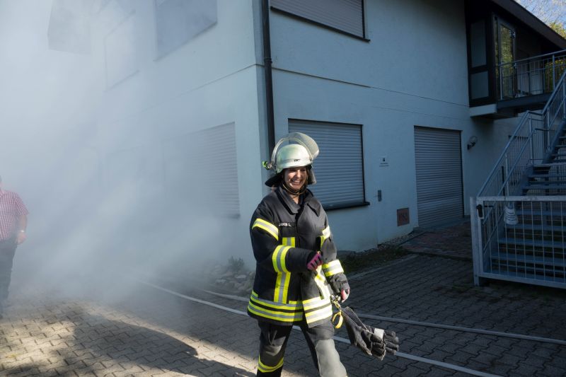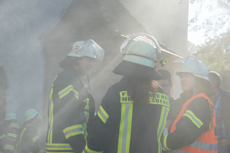 Die Taktische Ventilation ist ein wichtiger Baustein beim Vorgehen im Brandeinsatz. Hierbei wurden verschiedene Szenarien beübt, wie z.B. die Entrauchung eines Kellerraumes ohne eigene Abluftöffnung oder die Entrauchung eines Wohnraumes im Obergeschoss. Ebenso wurde die Vorgehensweise im verrauchten Bereich mit der Hilfe der Wärmebildkamera geschult.