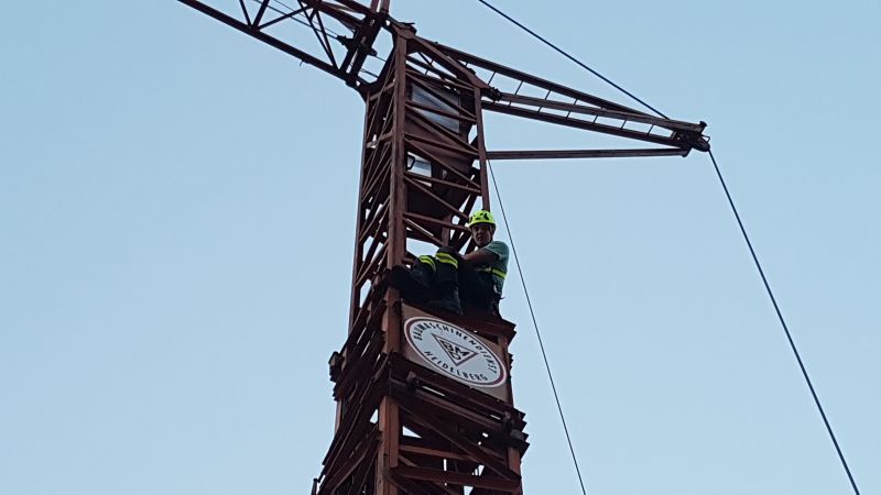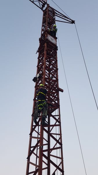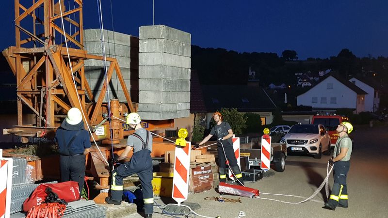 Die Gruppe Absturzsicherung hatte sich zur Aufgabe gestellt eine verletzte Person von einem Baukran zu rettten.