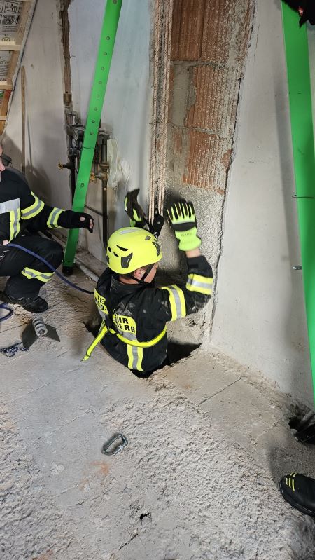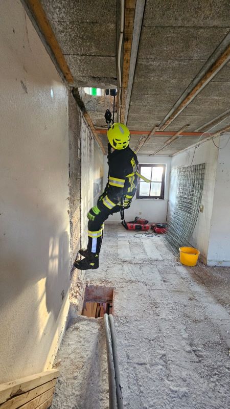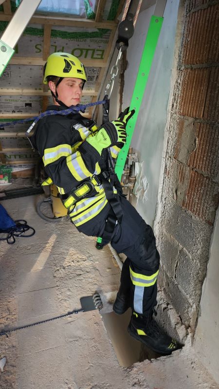 Die Gruppe Absturzsicherung beübte die Rettung aus einem Schacht.