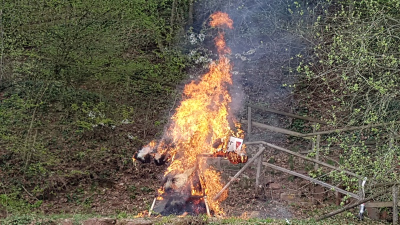 Die Alarmmeldung der Leitstelle lautete: unklare Rauchentwicklung mit Flammen vor dem Tor - Dilsberg. Schnell war klar, dass es sich hierbei nicht um einen Einsatz der Feuerwehr handelte, denn eine Fachfirma entleerte den Gastank der Jugendherberge indem sie das Gas abbrannte.