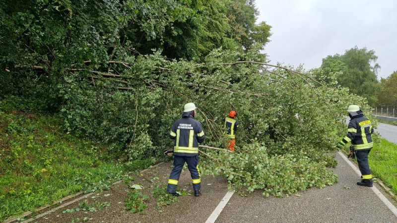 Auf der Kreisstraße zwischen Dilsberg und Mückenloch versperrte ein umgestürzter Baum die komplette Straße. Dieser wurde mittels Motorsäge entfernt und auf dem Seitenstreifen gelagert. Weitere Bäume waren entwurzelt und hingen so über der Straße, dass der Verkehr nicht freigegeben werden konnte. Mitarbeiter des städtischen Forstes fällten diese. Die Äste wurden wiederum auf dem Seitenstreifen gelagert. Die Straßenmeisterei sicherte die Stelle ab. Der Verkehr wurde während des Einsatzes über den Parkplatz umgeleitet werden.