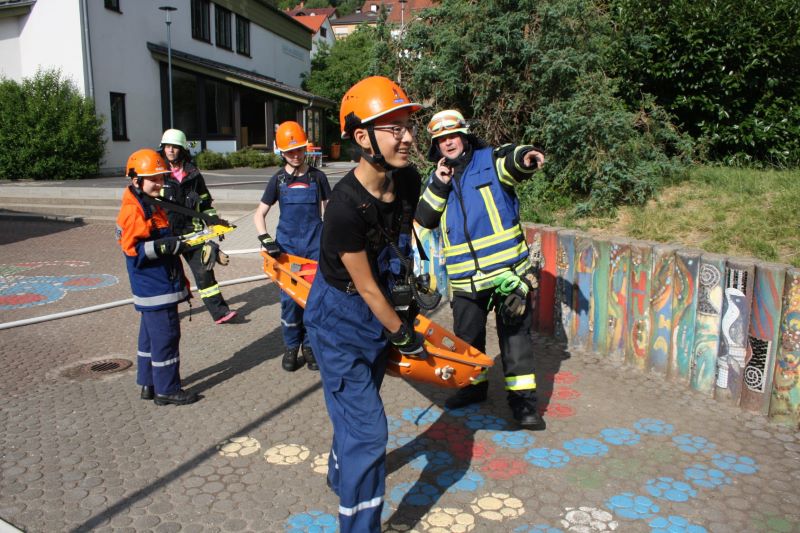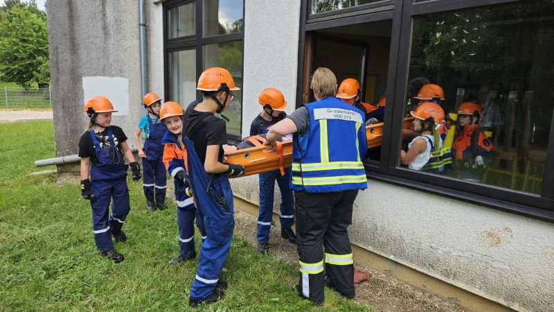 Danach wurde der Rollcontainer gegen weiteres wegrollen gesichert und mit der Rettung des Verletzten begonnen. Es war eine interessante Übung bei der die Kids auch wieder gut sehen konnte, dass es mehrere Wege zum Ziel gibt.