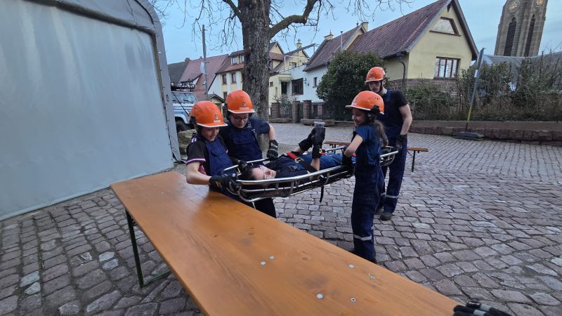 In zwei Gruppen aufgeteilt, wurde im Wechsel die Reanimation an Übungspuppen u.a. auch mit AED (automatisierter externer Defibrillator) sowie der schonende Patiententransport mit der Schleifkorbtrage geübt. Vielen Dank an Jan für die spannende und interessante Übung.
